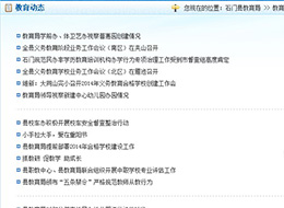 2012年石門縣教育局與動易進(jìn)行項目合作,對石門教育局網(wǎng)站進(jìn)行改版。網(wǎng)站建設(shè)從政府網(wǎng)站改革趨勢出發(fā),以實現(xiàn)集安全、資源整合、在線服務(wù)、信息公開、民主參與于一身的政務(wù)網(wǎng)站平臺為目的,打造建設(shè)了以石門縣教育局門戶網(wǎng)站為主站,學(xué)校門戶網(wǎng)站為子站的石門縣教育系統(tǒng)“1+N”網(wǎng)站站群系統(tǒng)。石門教育局網(wǎng)站通過全新架構(gòu)新型技術(shù)開發(fā)的業(yè)務(wù)管理系統(tǒng),真正成為一個政府綜合信息服務(wù)的平臺,實現(xiàn)石門縣教育局門戶網(wǎng)將從傳統(tǒng)“職能型”政府網(wǎng)站向現(xiàn)代化“在線服務(wù)型”政務(wù)平臺轉(zhuǎn)變。