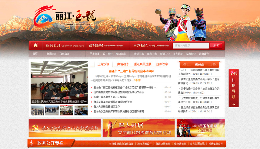 2013年玉龍縣人民政府與動易進(jìn)行項目合作,對玉龍縣人民政府網(wǎng)站進(jìn)行改版。