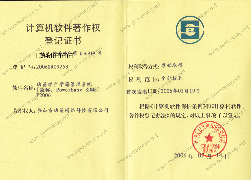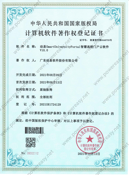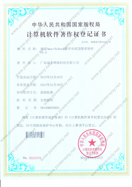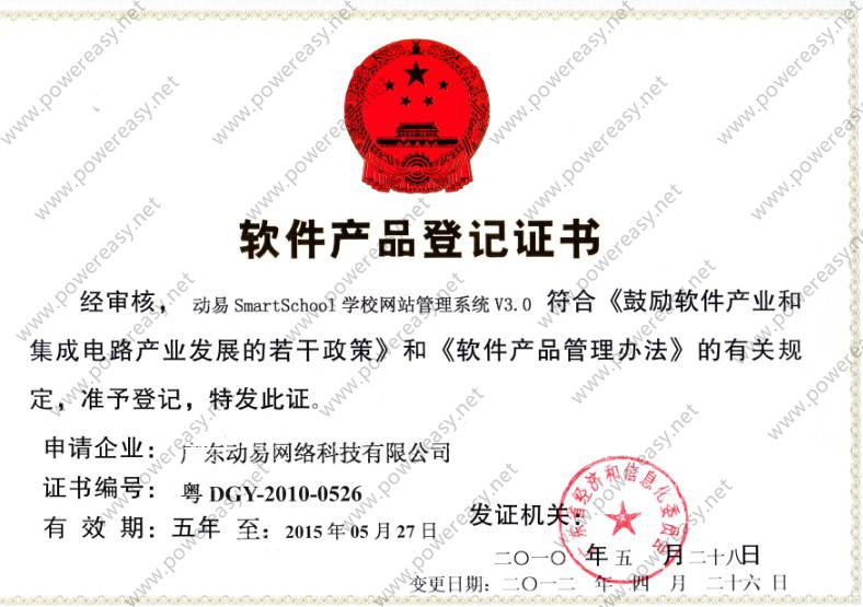 軟件產(chǎn)品登記證書 動易SmartSchool學(xué)校網(wǎng)站管理系統(tǒng)V3.0
