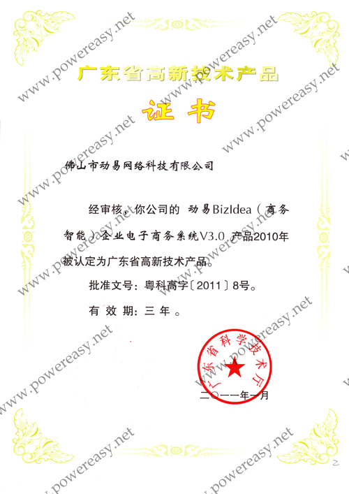 2010年廣東省高新技術(shù)產(chǎn)品 (BizIdea)證書