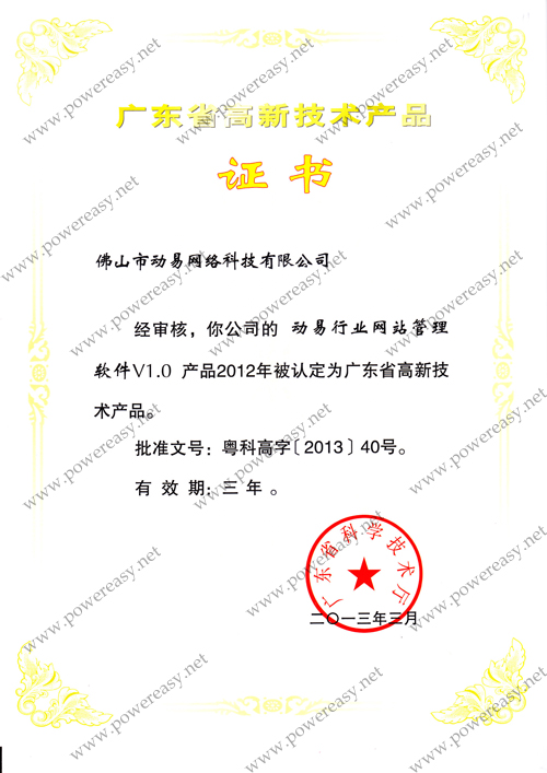 廣東省自主創(chuàng)新產(chǎn)品認(rèn)定證書 動易SiteFactory V3.0