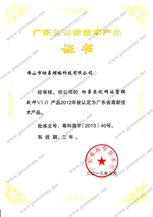 2012廣東省高新技術(shù)產(chǎn)品-動易醫(yī)院網(wǎng)站管理軟件V1.0