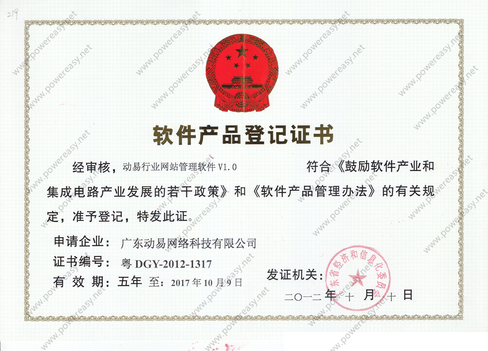 軟件產(chǎn)品登記-動易行業(yè)網(wǎng)站管理軟件V1.0