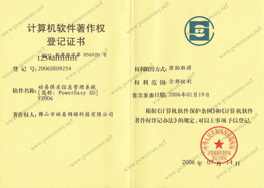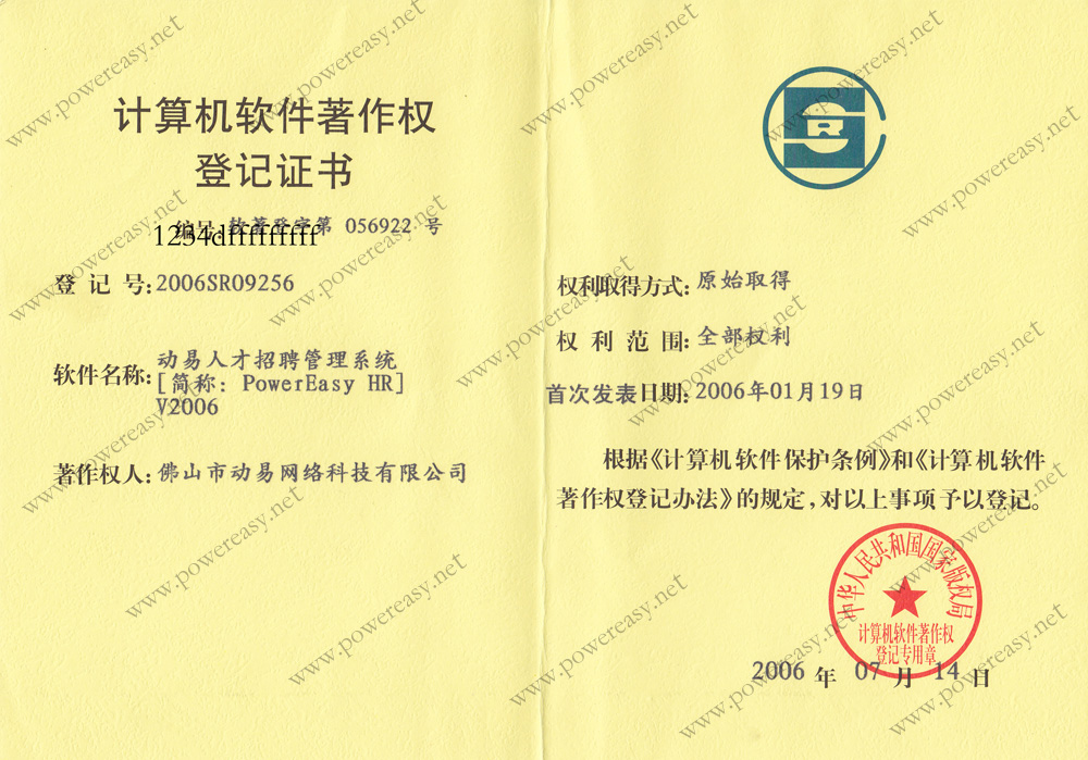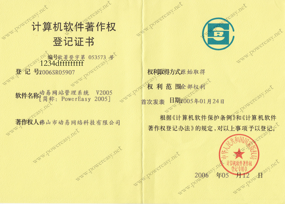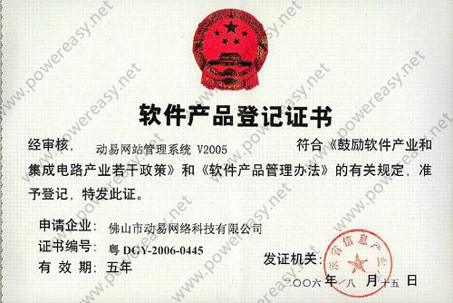 軟件產(chǎn)品登記證書 動易網(wǎng)站管理系統(tǒng)V2005