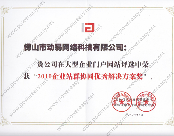 2010企業(yè)站群協(xié)同優(yōu)秀解決方案獎
