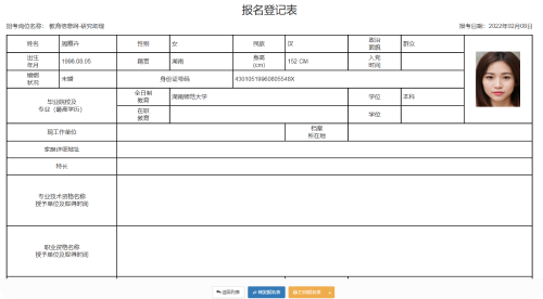 支持考生查看自己的報(bào)名表。報(bào)名表的上方,以進(jìn)度條的方式顯示報(bào)名表的當(dāng)前狀態(tài)、處理過程和結(jié)果。