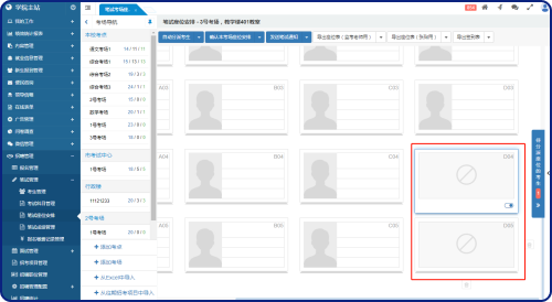 提供座位調(diào)整、自動(dòng)分派考生座位、手動(dòng)分派考生、確認(rèn)座位安排、導(dǎo)出座位表(監(jiān)考老師用)、導(dǎo)出座位表(張貼用)、導(dǎo)出簽到表功能。以及為所有考場(chǎng)自動(dòng)分派考生、確認(rèn)所有考場(chǎng)的座位安排、導(dǎo)出所有考場(chǎng)的座位表(監(jiān)考老師用)、導(dǎo)出所有考場(chǎng)的座位表(張貼用)、導(dǎo)出所有考場(chǎng)的簽到表操作。