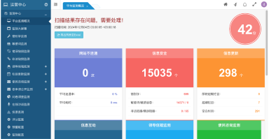 系統(tǒng)內(nèi)置監(jiān)測中心,與第三方監(jiān)測平臺功能類似,監(jiān)測項目包括有:站點可用性監(jiān)測、服務(wù)器可用性監(jiān)測、欄目更新情況監(jiān)測(含欄目更新預(yù)警、超期欄目、空白欄目)、錯別字監(jiān)測、敏感詞監(jiān)測、錯鏈監(jiān)測、在線信訪監(jiān)測、便民咨詢監(jiān)測、問卷調(diào)查監(jiān)測、在線訪談監(jiān)測、投票監(jiān)測等。支持監(jiān)測評分低于下限時進(jìn)行預(yù)警,支持服務(wù)器可用性出現(xiàn)異常時進(jìn)行報警。