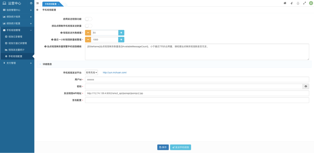 支持短信發(fā)送平臺(tái)故障報(bào)警功能