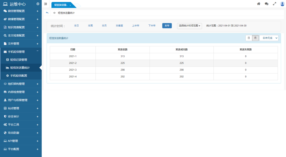 支持短信發(fā)送量統(tǒng)計(jì)功能