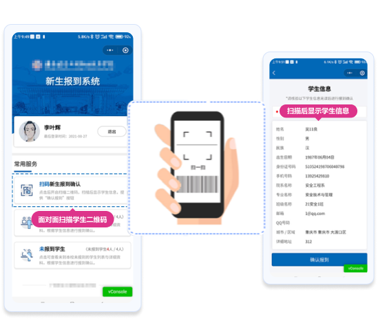 班主任可以通過掃描學(xué)生的報到二維碼來查看學(xué)生信息,進(jìn)行驗證和確認(rèn)報到。