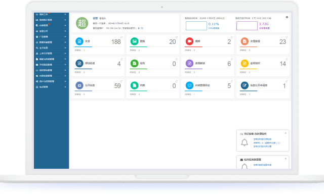 此外,右下角設有冒泡提示,實時提醒用戶各模塊的待處理任務和待審核信息,點擊提示即可快速進入相應模塊進行處理。