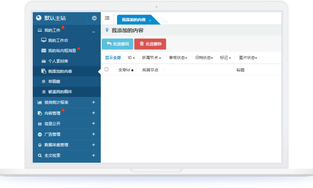 支持按內(nèi)容模型對被退回稿件進行管理,每種內(nèi)容模型均精心設計了與之適配的列表頁與查看頁,以提升管理效率與體驗。