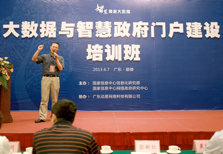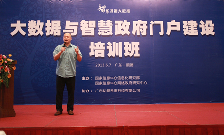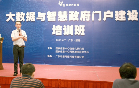 2013年6月7日,由國(guó)家信息中心信息化研究部、國(guó)家信息中心網(wǎng)絡(luò)政府研究中心(簡(jiǎn)稱網(wǎng)研中心)主辦,廣東動(dòng)易軟件股份有限公司承辦的“大數(shù)據(jù)與智慧政府門(mén)戶建設(shè)”培訓(xùn)班在廣東順德舉行。來(lái)自廣東、湖南、貴州等地區(qū)60個(gè)市縣及部門(mén)的政府網(wǎng)站管理人員及動(dòng)易公司相關(guān)負(fù)責(zé)人共140人參加了本次培訓(xùn)。國(guó)家信息中心信息化研究部主任、網(wǎng)研中心主任張新紅以及網(wǎng)研中心副主任續(xù)揚(yáng),網(wǎng)研中心培訓(xùn)認(rèn)證部主任崔巖莉,咨詢部主任王建冬博士,廣東動(dòng)易軟件股份有限公司總裁粟維勝先生等相關(guān)負(fù)責(zé)同志參加了此次會(huì)議。會(huì)議由網(wǎng)研中心副主任續(xù)揚(yáng)主持。