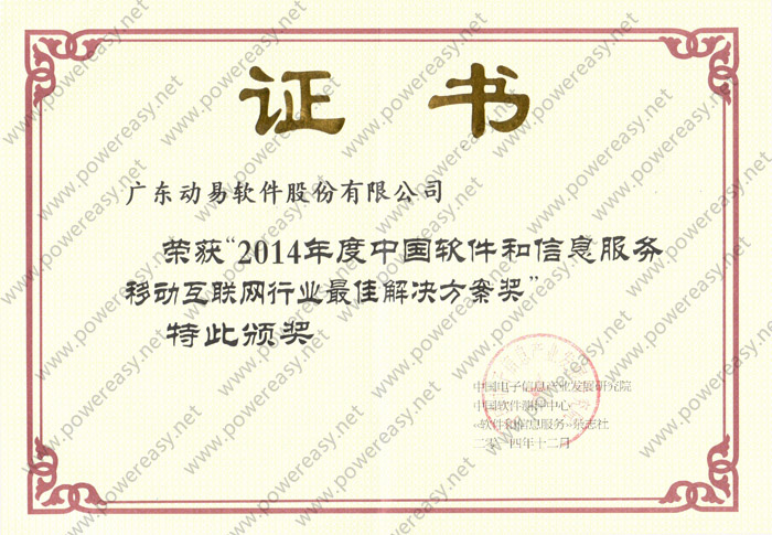 在當(dāng)晚的 “2014中國(guó)軟件巔峰之夜”活動(dòng)中,動(dòng)易軟件憑借多年服務(wù)電子政務(wù)的經(jīng)驗(yàn)和在移動(dòng)互聯(lián)網(wǎng)領(lǐng)域的研發(fā)成果,榮獲“電子政務(wù)領(lǐng)域杰出企業(yè)”、“移動(dòng)互聯(lián)網(wǎng)行業(yè)最佳解決方案”雙料大獎(jiǎng)。活動(dòng)有多位產(chǎn)業(yè)主管部門(mén)領(lǐng)導(dǎo)出席,300多家全國(guó)知名軟件和信息技術(shù)服務(wù)企業(yè)高管現(xiàn)場(chǎng)觀禮。