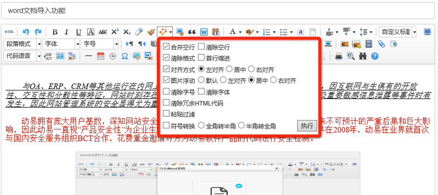 所謂”欲先善其事,必先利其器“,造成大量時(shí)間花費(fèi)在排版這一環(huán)節(jié)上的主要問題,還是目前”內(nèi)容在線編輯器“的不好用上。絕大部分內(nèi)容編輯器無法保留或保留不全從 Word 里復(fù)制粘貼到編輯器里的內(nèi)容格式,造成需要二次編輯或重新編輯。所以,如果能夠幫助客戶解決保留格式并可以自動(dòng)排版這一需求,將可以大大提升政府網(wǎng)站的運(yùn)營效率。