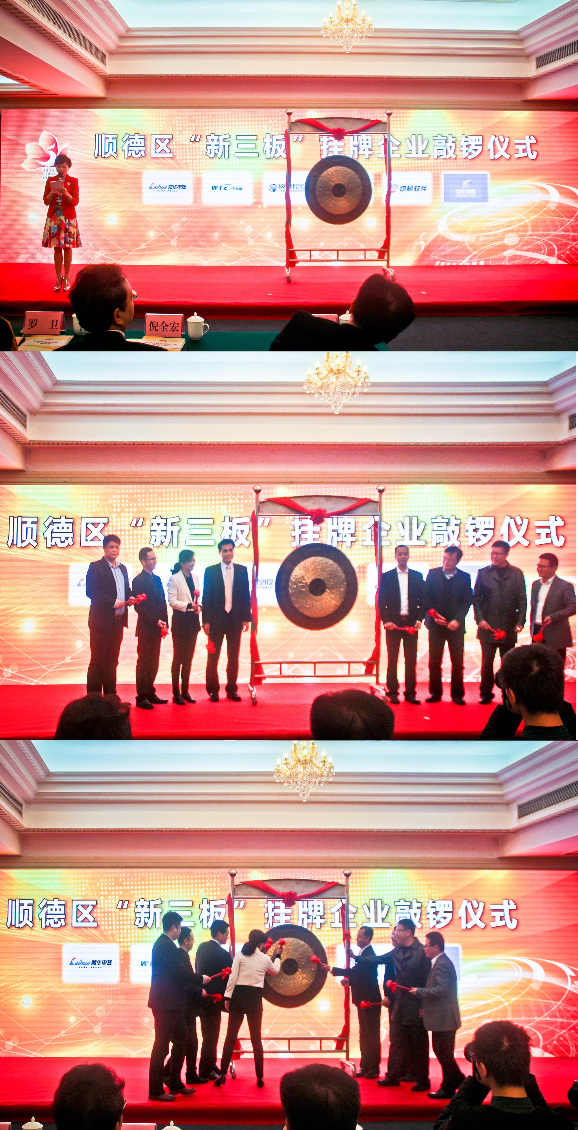 在順德區(qū)召開的科技金融產(chǎn)業(yè)融合發(fā)展大會上,順德大手筆拿出1200萬元獎勵14家上市企業(yè),動易軟件作為順德軟件新三板第一股與其他5家新增新三板企業(yè)共同敲響了上市鐘聲。