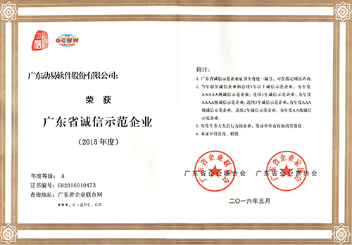 動(dòng)易軟件榮獲“廣東省誠(chéng)信企業(yè)”榮譽(yù)稱號(hào)