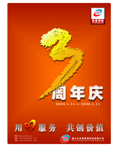 2006年1月11日,動易三周年的大喜日子,快樂與網(wǎng)友一起分享! “創(chuàng)意廣告詞有獎征集”、“尋找與動易同生日的站長”、“周年紀念優(yōu)惠”、“我與動易的故事有獎征文”,四大活動板塊邀請您的激情參與!活動多多,精彩多多!快來參加吧!