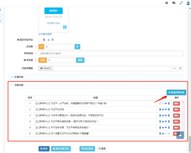 系統(tǒng)提供了“相關內容補全”功能。開啟這個功能后,當手工設置的相關內容數量達不到在此節(jié)點相關內容的顯示數,或沒有手工設置相關內容時,系統(tǒng)自動通過全文檢索功能找到包含了在“關鍵詞”字段中設置的關鍵詞內容,并填充到相關內容列表中,以盡量保證足額顯示相關內容。
