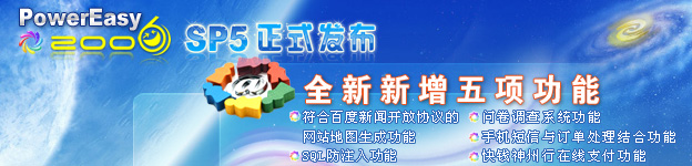 追求產(chǎn)品的盡善盡美是我們的共同愿望,打造超一流的網(wǎng)站管理系統(tǒng)是我們的共同目標。經(jīng)過動易開發(fā)人員認真的收集、整理、修復和測試,SP5已經(jīng)修復了SP4以來目前已知的40多項大、小BUG,有多處更新和改動并經(jīng)過多方面運行測試,系統(tǒng)更趨穩(wěn)定;集成了SP4后的3次安全更新和SQL防注入插件,系統(tǒng)更加安全;新增符合百度互聯(lián)網(wǎng)新聞開放協(xié)議的網(wǎng)站地圖生成功能、SQL防注入功能、問卷調(diào)查系統(tǒng)功能、手機短信與訂單處理結(jié)合功能、快錢神州行在線支付功能等新功能……