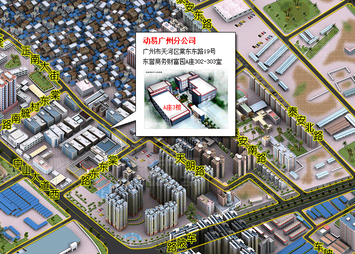 動易廣州分公司新址位于位于廣州天河區(qū)棠東東路的“東譽商務財富園”,辦公面積近500平方。棠東東路與黃埔大道與中山大道相連,周圍有棠東、棠下、東圃等居民區(qū)和駿景花園、天朗明居、春江花園等小區(qū)。有296路、515路、210路、883路等數(shù)十條公交經(jīng)過,2009年底前將開通的地鐵五號線在附近設有車陂站地鐵口,交通與生活十分便利。