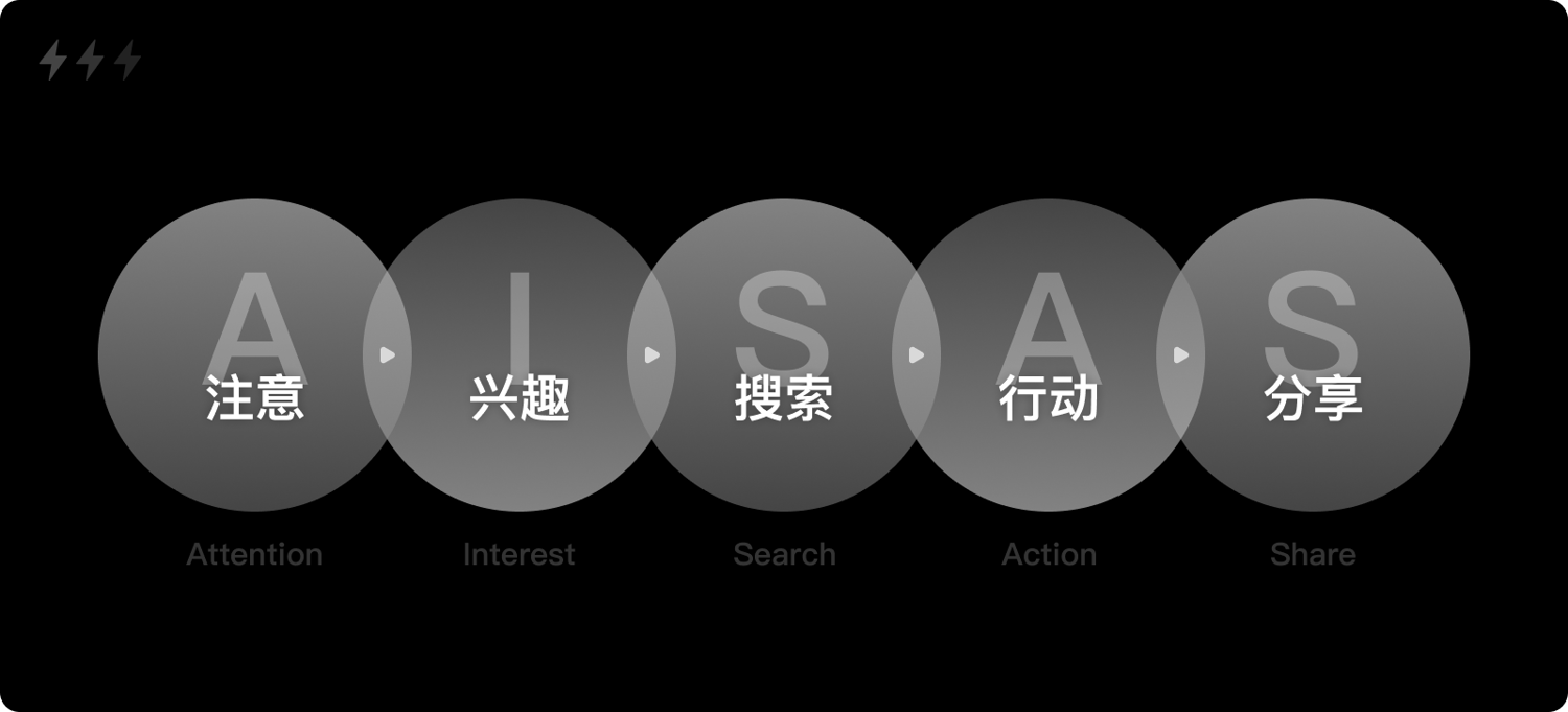 當(dāng)互聯(lián)網(wǎng)作為全新的媒介進(jìn)入我們的生活,消費(fèi)者行為模式開(kāi)始重新解構(gòu)。2005年,日本電通廣告集團(tuán)提出了全新模型:AISAS。模型中添加了兩個(gè)來(lái)自互聯(lián)網(wǎng)的行為,搜索和分享,這也正是互聯(lián)網(wǎng)造成消費(fèi)者行為改變的重要原因。