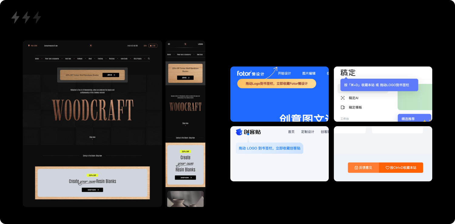 2. 收藏引導(dǎo):在PC瀏覽器和手機(jī)系統(tǒng)中,用戶(hù)可以通過(guò)“添加到閱讀列表、書(shū)簽或主屏幕”等功能來(lái)收藏頁(yè)面。微信小程序也有“添加到我的小程序”的功能,這些收藏方式能顯著提升用戶(hù)再次查找和打開(kāi)頁(yè)面的速度。因此,設(shè)計(jì)師可以在頁(yè)面中進(jìn)行適當(dāng)?shù)氖詹匾龑?dǎo),尤其針對(duì)工具型產(chǎn)品官網(wǎng)。例如,提供“收藏本頁(yè)”或“添加到主屏幕”的按鈕,并進(jìn)行簡(jiǎn)單的提示。這不僅有助于提高用戶(hù)的回訪率,還能增強(qiáng)用戶(hù)的粘性。