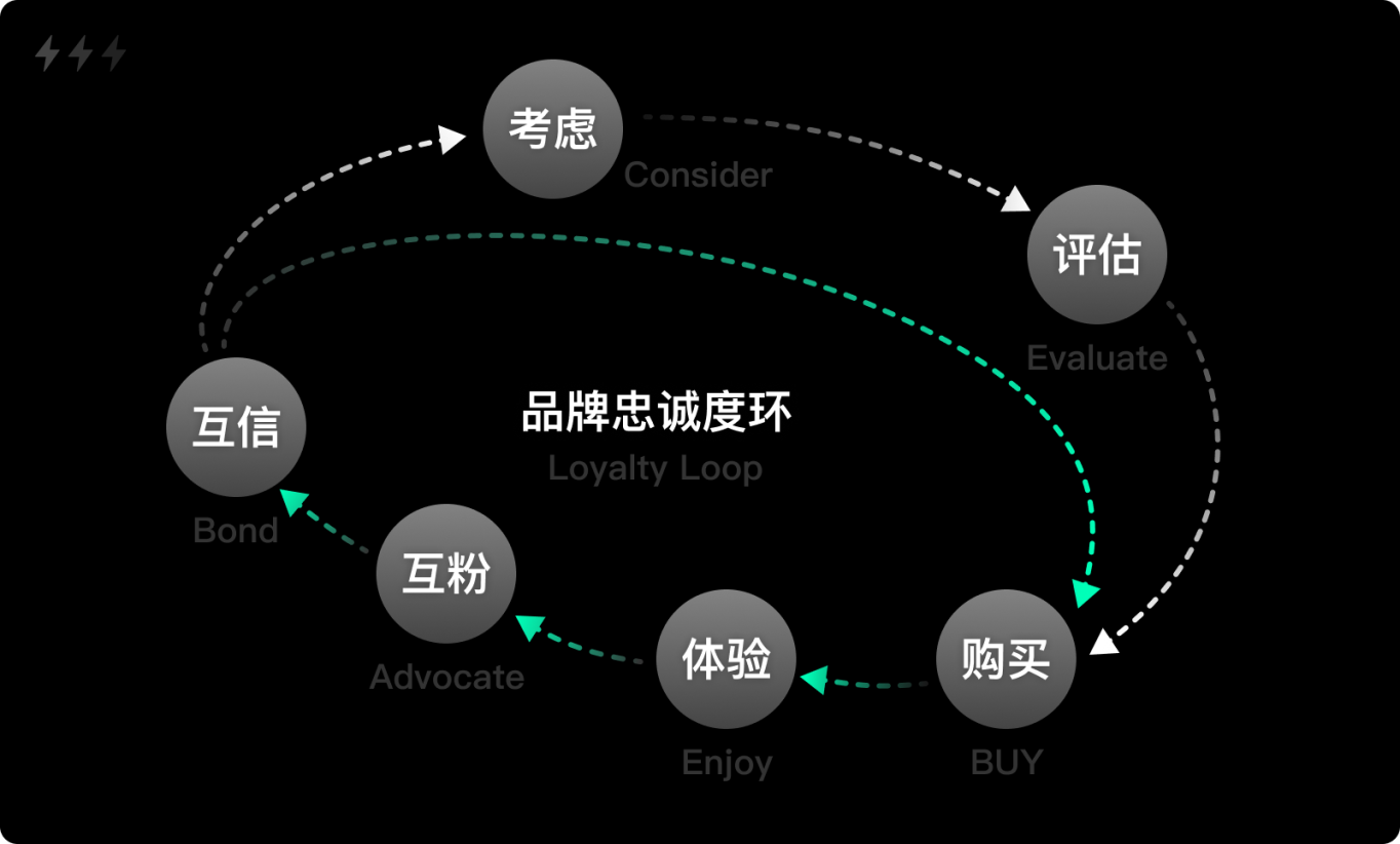 3. 忠誠(chéng)路徑:對(duì)于已經(jīng)購(gòu)買(mǎi)過(guò)的用戶(hù),他們?cè)诋a(chǎn)生需求后,通過(guò)搜索或其他方式快速訪問(wèn)官網(wǎng),在已有信任感的驅(qū)使下,大概率會(huì)直接采取行動(dòng),跳過(guò)注意、興趣和決策階段。
