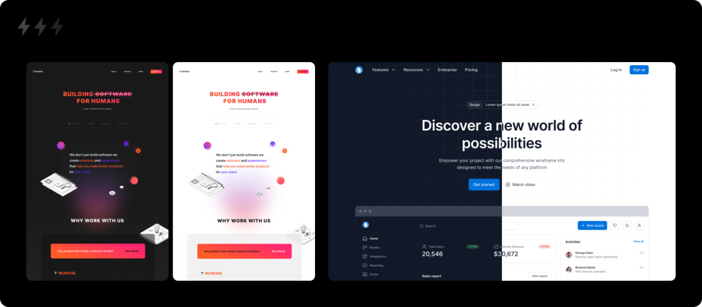 1. 深淺主題:首先確定深色主題還是淺色主題。淺色主題的文字對(duì)比度較高,適合需要呈現(xiàn)大量?jī)?nèi)容的的網(wǎng)站。淺色的風(fēng)格適配性也很強(qiáng)。深色主題則能更好地凸顯色彩鮮艷的內(nèi)容或圖形,傳遞出時(shí)尚、現(xiàn)代、前沿的感覺(jué)。主題色調(diào)的選擇并非二選一,有時(shí)深淺交錯(cuò)的呈現(xiàn)形式能夠結(jié)合兩者的優(yōu)點(diǎn),視覺(jué)體驗(yàn)更佳。